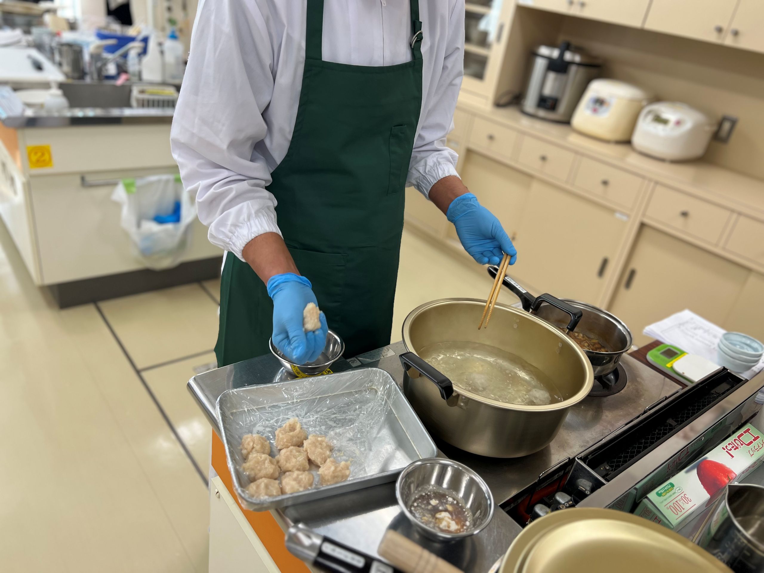 昨年から「マイスター社内資格制度」を導入しまして、今回で2回目となる実技試験を執り行いました。実技の内容は基本的な作業はもちろんですが、衛生管理等様々なチェック項目があり、とても緊張しているのが伺えました。